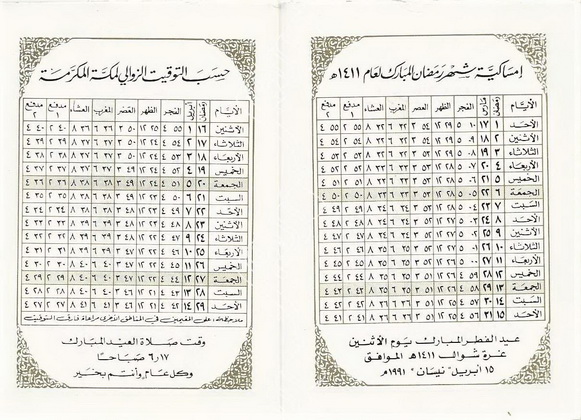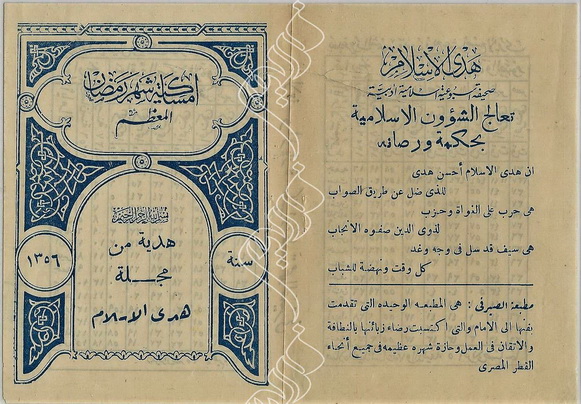 إمساكية رمضان هدية مجلة هدي الإسلام القاهرة
