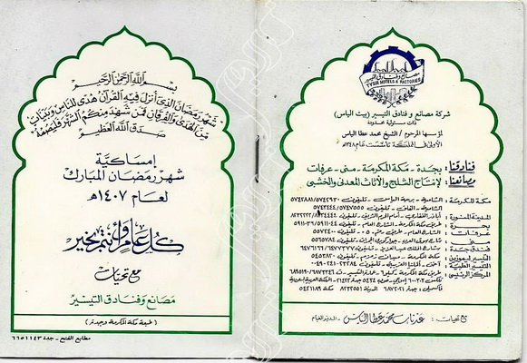 وثيقة إمساكية رمضان إهداء مصنع رمضان شحاته أحمد القاهرة