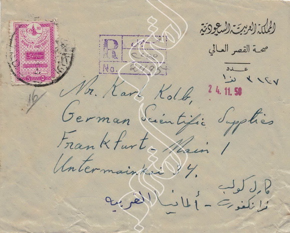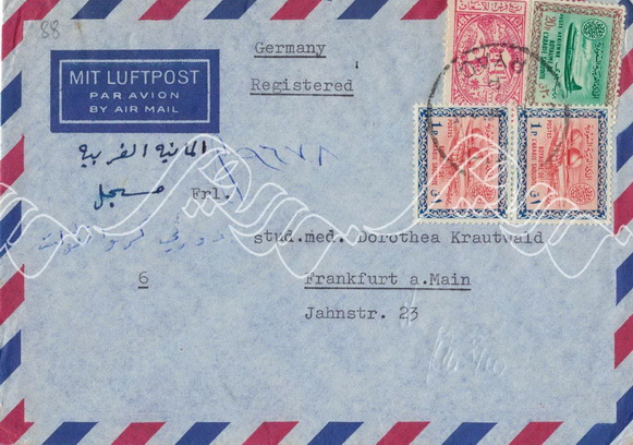 مغلف مسجل ختم بريد مسجل موجه إلى ألمانيا