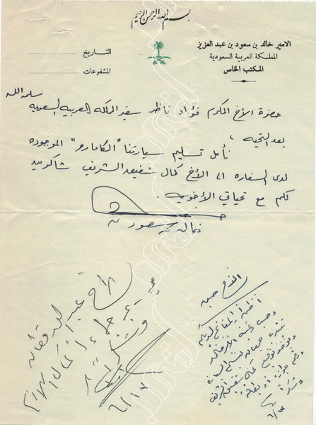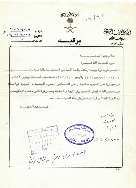 برقية من الديوان الملكي المكتب الخاص لسمو الأمير فهد بن عبد العزيز