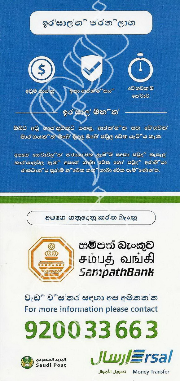 نشرة إعلامية تحويل مالي إلى سريلانكا 2
