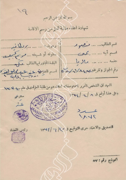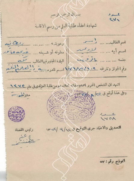 وثيقة إعفاء طلبة العلم من رسوم الإقامة