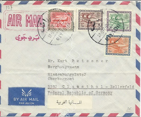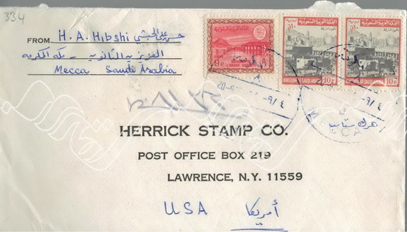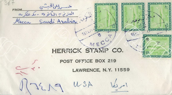مغلف مسجل المدرسة العزيزية مكة المكرمة الطابع الجوي فيصل 1