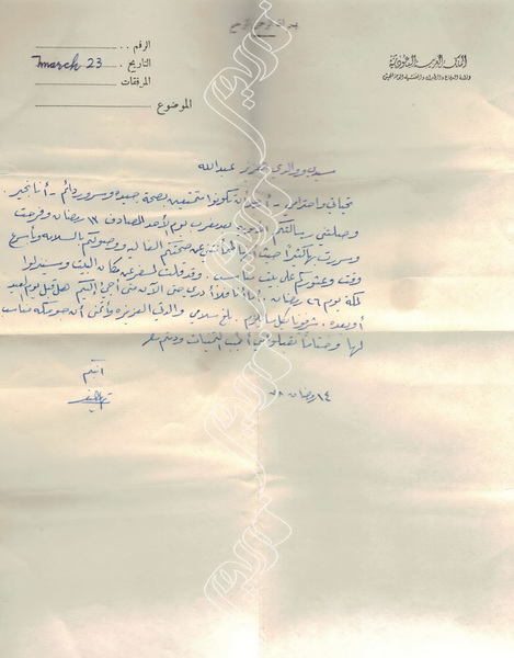 مغلف مع محتوى من تركي إلى والده الشيخ عبد الله التركي