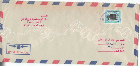 مغلف من بنك الرياض لمدير الفرع بشرورة