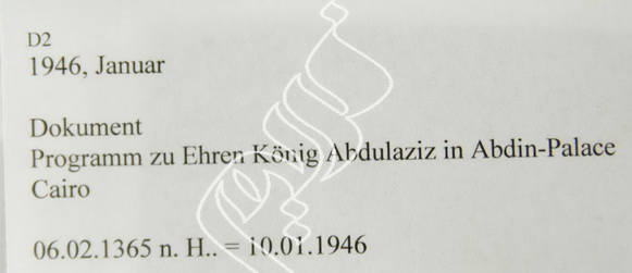 وثيقة برنامج في قصر عابدين على شرف الملك عبد العزيز في زيارته للقاهرة