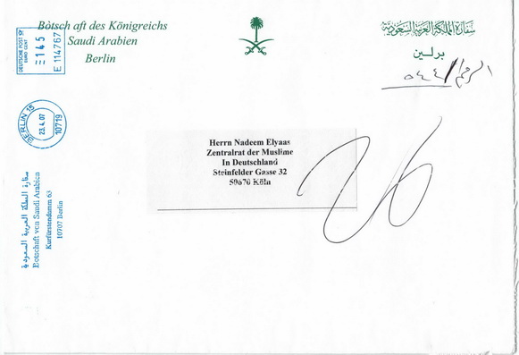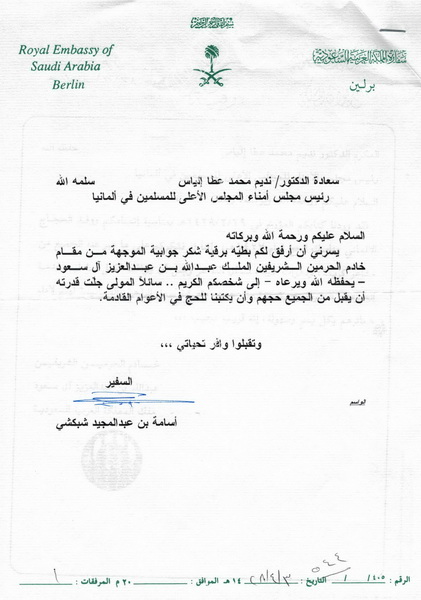 خطاب مرافق من السفير السعودي في برلين الدكتور أسامة الشبكشي