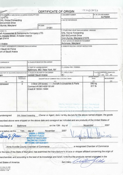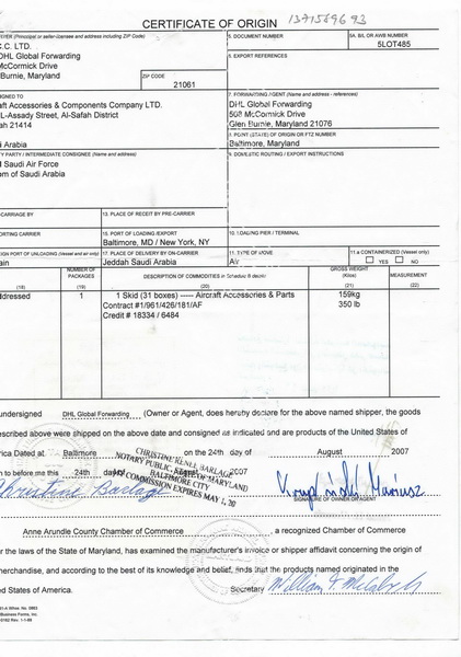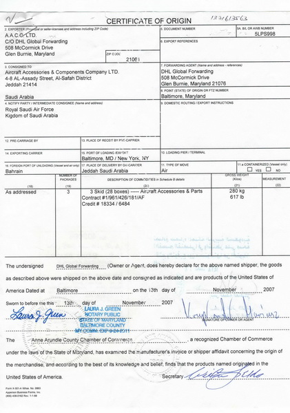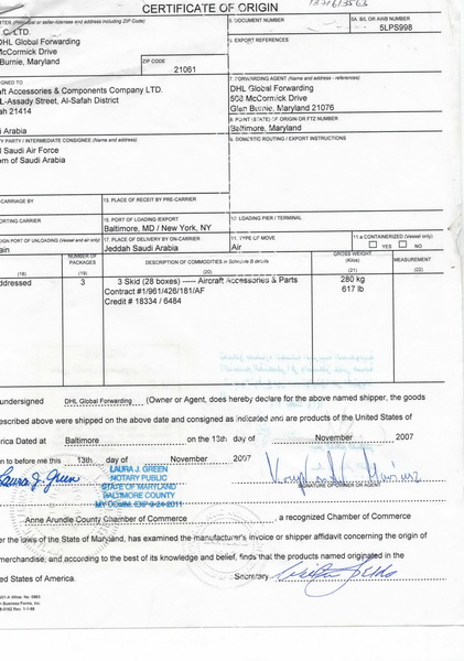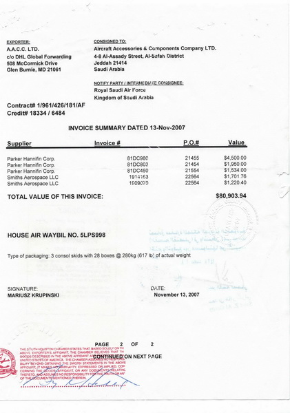 وثيقة فاتورة مبدئية لقطع غيار للسلاح الجوي