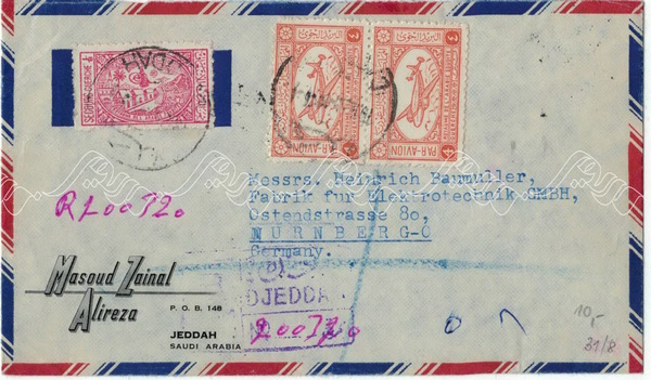 B1-101 ختم بريد مسجل طابع جوي 1949م